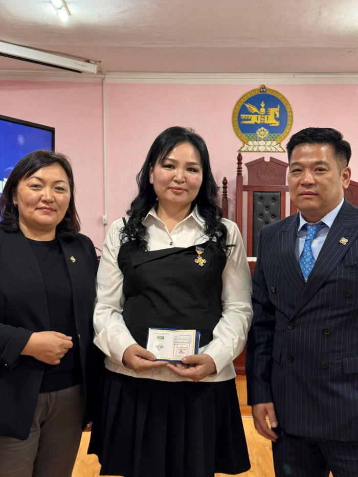 Сүхбаатар аймаг дахь сум дундын анхан шатны шүүх дэх эвлэрүүлэн зуучлагчийн туслах Б.Батчимэг “ШҮҮХИЙН ЕРӨНХИЙ ЗӨВЛӨЛИЙН ХҮНДЭТ ТЭМДЭГ”,